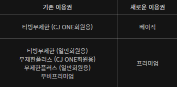 티빙 이용권 개편 내용
