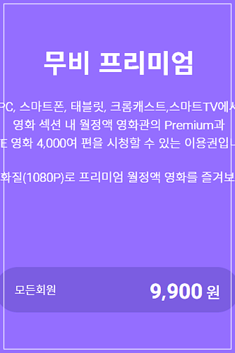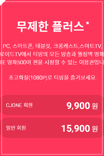 12월 14일까지 기존 이용권을 구매하는 고객은 개편 후 이용권 명칭이 변경되더라도 기존 금액으로 계속 정기 결제가 가능합니다. 가장 고가 요금제인 프리미엄 이용권은 PC 기준 13,900원이지만, 14일까지 CJ ONE 회원 전용 무제한 플러스 9,900원 이용권을 구매하면 프리미엄으로 변경 후에도 계속 4천 원 저렴하게 이용이 가능합니다.