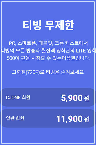 티빙 동시접속 인원 부분에서 가장 크게 손해를 보게 되는 기존 고객은 CJ ONE 회원용 티빙 무제한 이용권을 공유 계정으로 함께 이용하던 사람들입니다. 티빙 이용권 개편 내용을 아래에서 살펴보도록 하겠습니다.