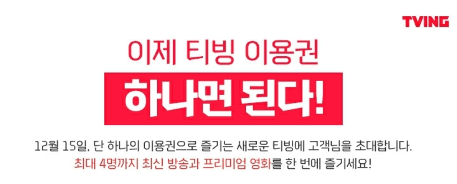 사실 이 부분은 소비자 입장에서 말도 안 되게 이득이기 때문에 정정되지 않는 것이 이상할 정도였습니다. 그리고 티빙에서는 이제야 공지를 통해 티빙 이용권 요금제과 동시 접속 인원 규제에 대한 12월 대규모 개편을 예고하고 나섰습니다.