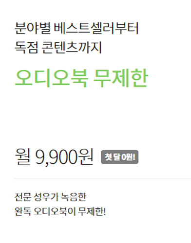 어떤 서비스들은 자신들의 멤버십을 홍보하면서 부가가치세 별도를 작게 표시하고 금액이 더 저렴한 것처럼 안내하는 경우가 있습니다. 하지만 위에서 안내한 윌라 오디오북 가격은 부가세는 물론 결제 수수료가 포함된 금액입니다.