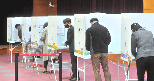 휴일이 아니기 때문에 직장 등 낮 시간에 투표를 하지 못하는 선거인을 배려하기 위해 투표 시간을 오후 8시까지 연장합니다. 혹은 사전투표를 활용해 미리 자신의 한 표를 행사할 수 있습니다.